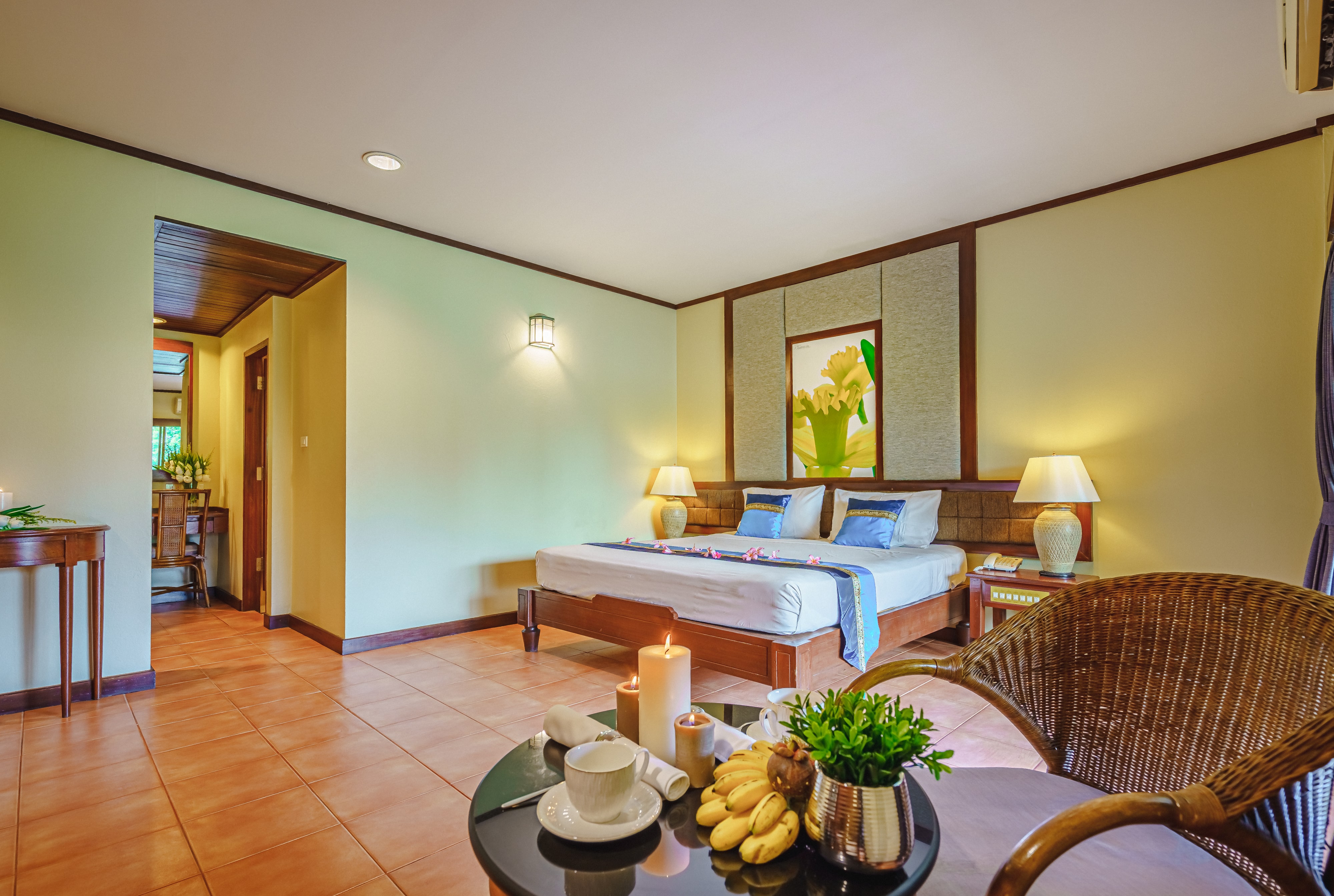 Каждый апартамент курорта представляет собой светлое просторное помещение с большой ванной комнатой, спальной зоной, балконом, кондиционером, оборудованной кухней. А если Вы — счастливый обладатель большой семьи, то на курорте возможно размещение на настоящей тропической вилле, с джакузи и двумя спальнями. Это незабываемые ощущения, когда утром можно выйти из собственного дома, пройтись по зеленым коридорам и искупаться в бассейне, съесть сочный экзотический фрукт и отправиться, наконец, навстречу новым впечатлениям от отличного отдыха.